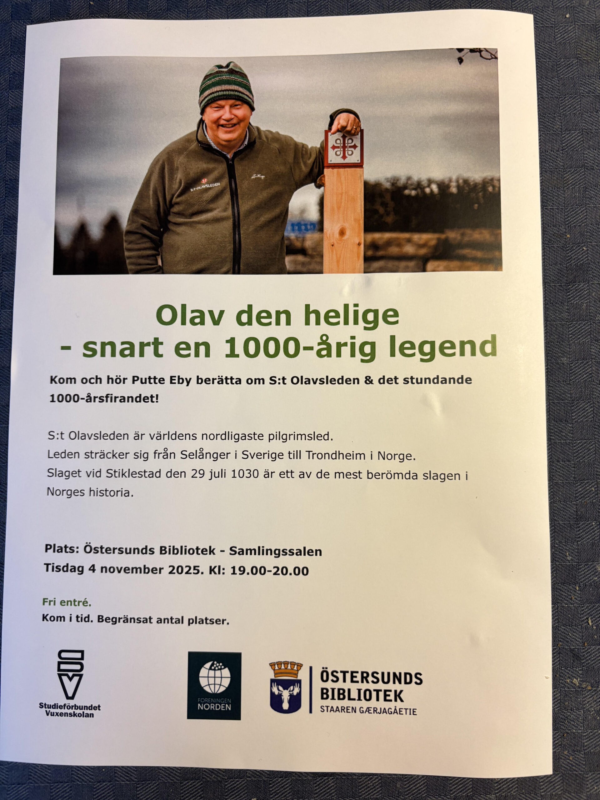 Den 4 november kommer Putte Eby att berätta om Olav den helige, S:t Olavsleden och det stundande 1000-årsfirandet.