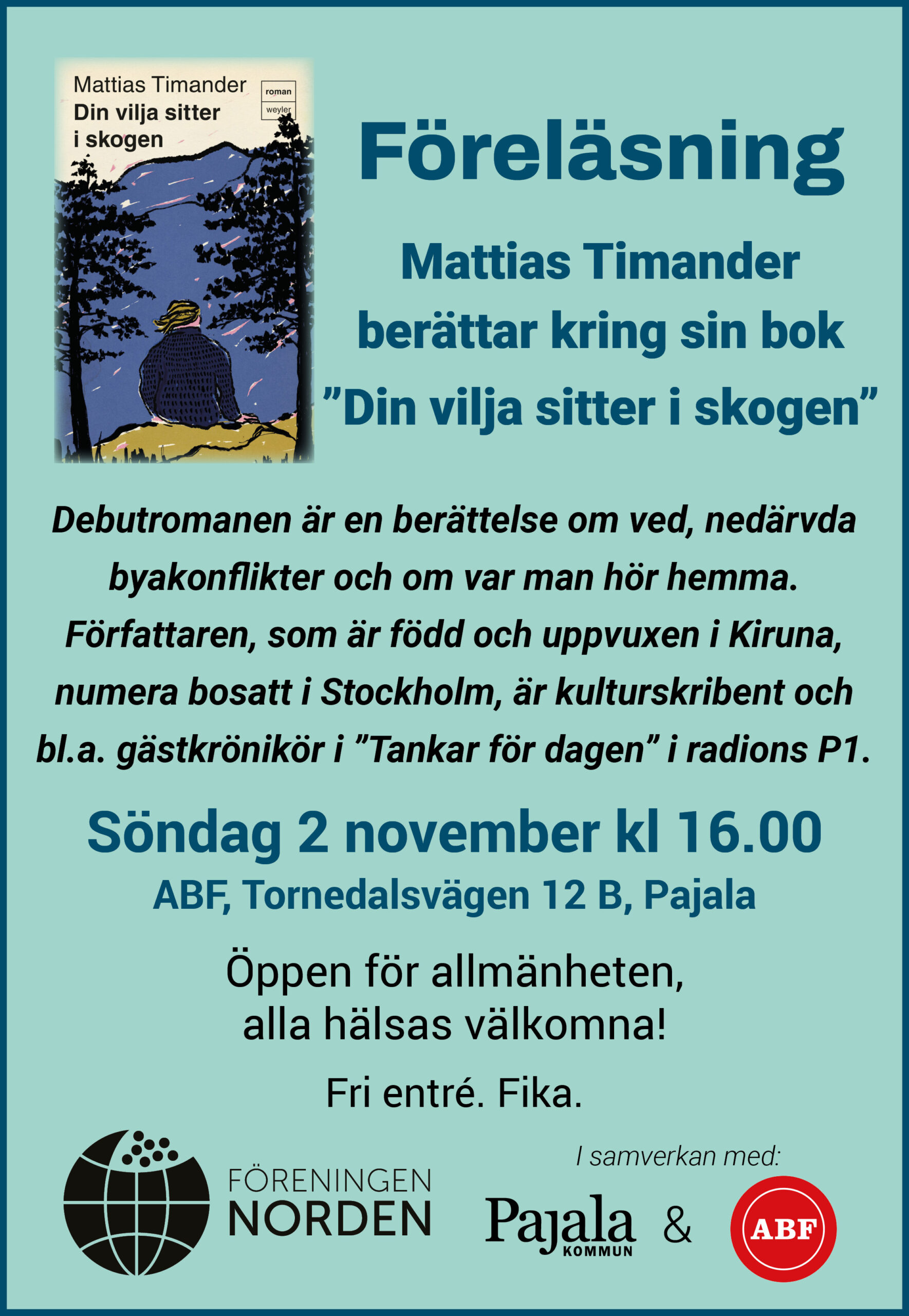 Temat för året är “Samhörighet i Norden” och David Sandén kommer att läsa ur boken “Sömnlösa” av Jon Fosse. Efter uppläsningen kommer David och hans son att sjunga ochspela.